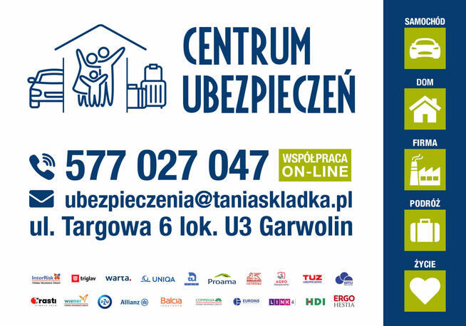 CENTRUM UBEZPIECZEŃ I REJESTRACJI POJAZDÓW ul. Targowa 6 lok.U3 04-800 Garwolin @ tel. 577 027 047 / WSPÓŁPRACA ...